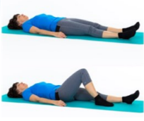 Lie on your back with your legs straight, wherever you are most comfortable. Slowly bend your knee by sliding your heel towards your buttocks and return to the starting position.