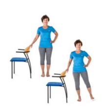Sit up straight on a sturdy chair, with your feet flat on the floor. Bring your toes up towards your shin and straighten your knee, using the muscles at the front of your thigh in a controlled manner and then return to the starting position.