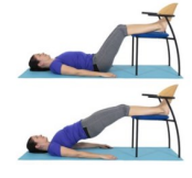 Lie on your back, with your lower legs resting on a sturdy chair. Suck in your belly button and clench your buttocks.