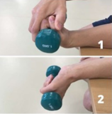 Support your forearm on a table with your palm facing down. Hold the weight.