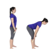 Stand tall with your feet hip-width apart. Hold a stick close to the top of your thighs and hands positioned just wider than shoulder width apart. With almost straight knees, tilt your upper body forward and push your hips gently backwards until you feel a stretch in the back of your thighs.
