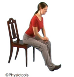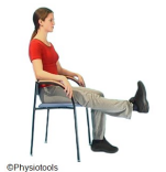 Sit on a chair. Pull your toes up, tighten your thigh muscle and straighten your knee. Hold and slowly relax your leg.