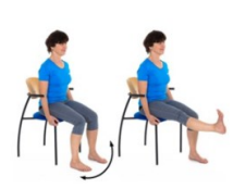 Sit up straight on a sturdy chair, with your feet flat on the floor. Bring your toes up towards your shin and straighten your knee, using the muscles at the front of your thigh in a controlled manner and then return to the starting position.