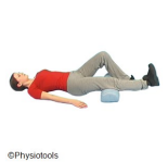 Lying on your back. Bend one leg and put your foot on the bed, and put a cushion under the other knee.