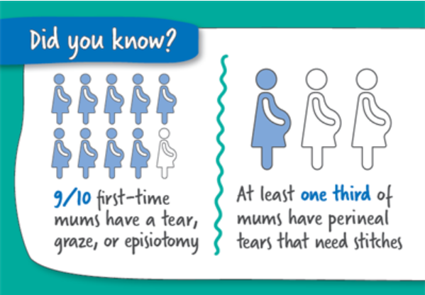 Ninety per cent of women giving birth vaginally will get a perineal tear (this number includes all types of tear). This most often occurs to the tissue and skin at the vaginal opening and sometimes affects the pelvic floor muscle as well. Sometimes an episiotomy may be required to assist during the delivery of your baby, and when instruments such as ventouse (suction cap) or forceps are used. A few women have a tear to the muscles of the back passage as well, and this is called a third or fourth degree tear.