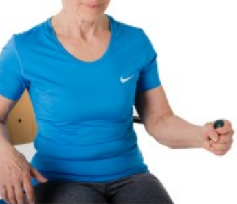 In the images below, the model is using a weight. At home you could use a water bottle, as 1 litre = 1kg. Make sure however that whatever you are using, you are challenging yourself.